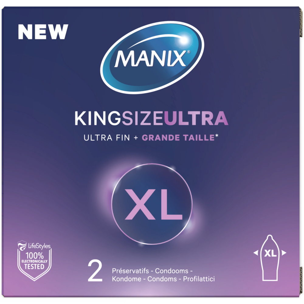 Plus long et plus large que les préservatifs standards, Manix King Size est le préservatif favori des étreintes puissantes. Sa surface lisse et sa grande finesse sont exaltant et restituent une sensibilité intacte, tout en garantissant un confort absolu.