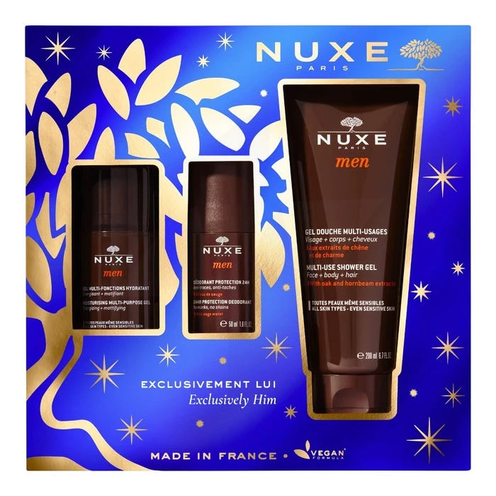 Offrez lui le Coffret Nuxe Men : les essentiels multi-fonctions dont il a besoin pour prendre soin de sa peau au quotidien.
