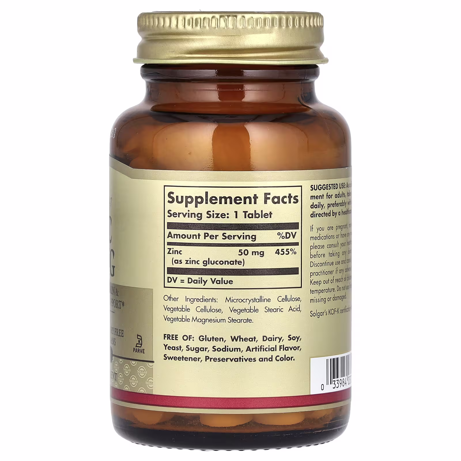 Solgar, Zinc, 50 mg, 100 comprimés est disponible chez parabioty la premère parapharmacie en ligne au maroc avec meilleur prix maroc et livraison partout au maroc