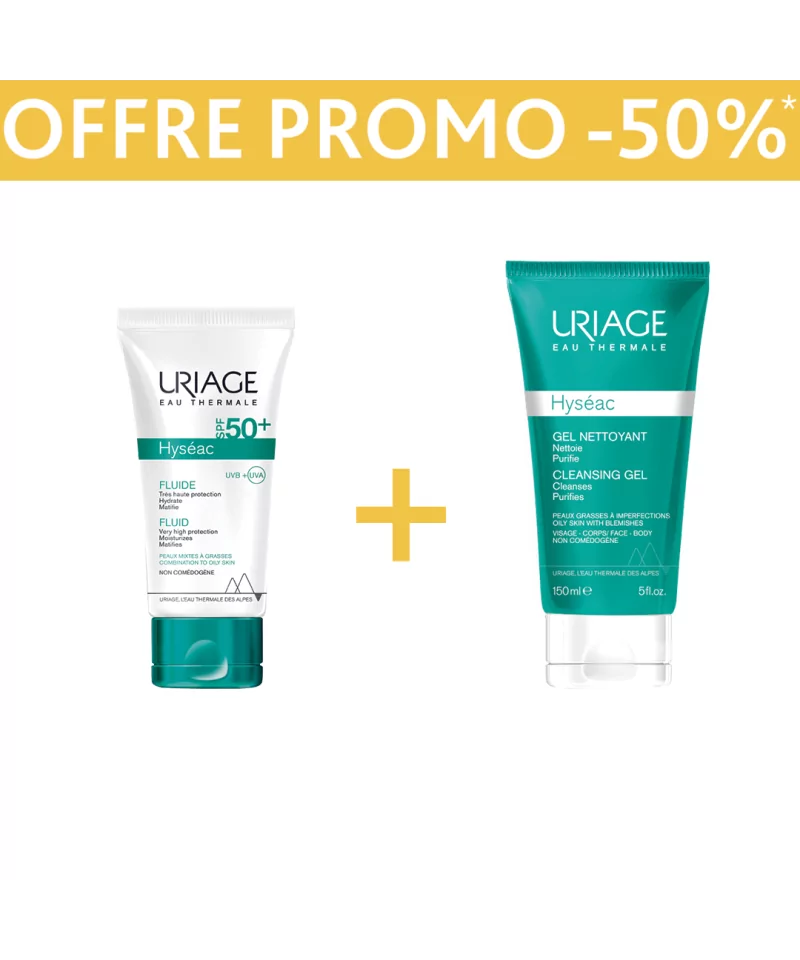Le Fluide HYSÉAC SPF50+ associe une protection solaire efficace aux propriétés adaptées aux peaux mixtes à grasses. Il dispose d'une très haute protection UVA-UVB grâce à un nouveau complexe filtrant ultra–performant sans octocrylène. Sa texture est non collante et non grasse. Hydrate Très hydratant, il détient des actfifs limitant la déshydratation. Matifie Il apporte un effet matifiant durable grâce à l’extrait de Licorice qui limite l’excès de sébum et prévient ainsi l’apparition de nouvelles imperfections.