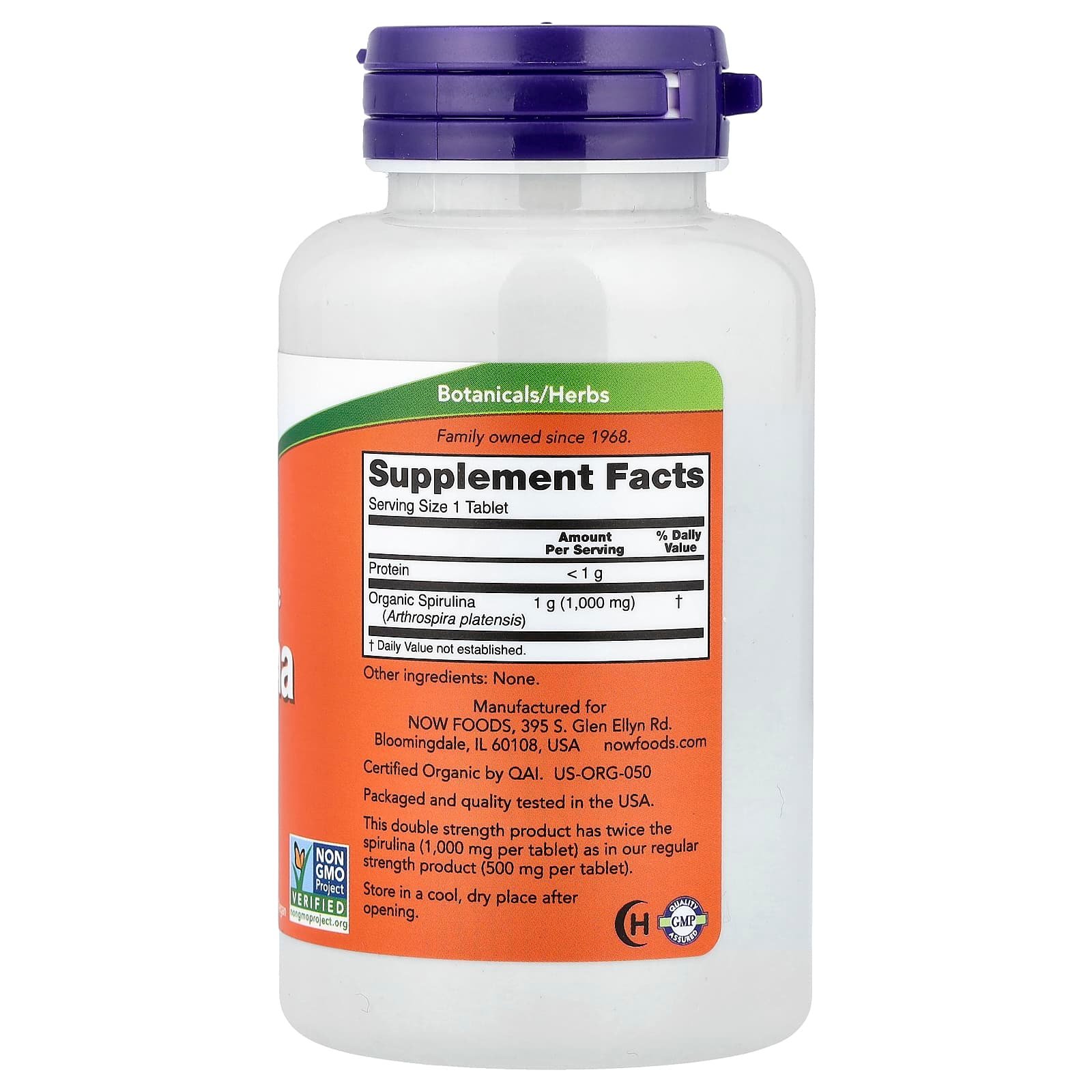 NOW Foods, Spiruline certifiée biologique, Double efficacité, 1000 mg, 120 comprimés